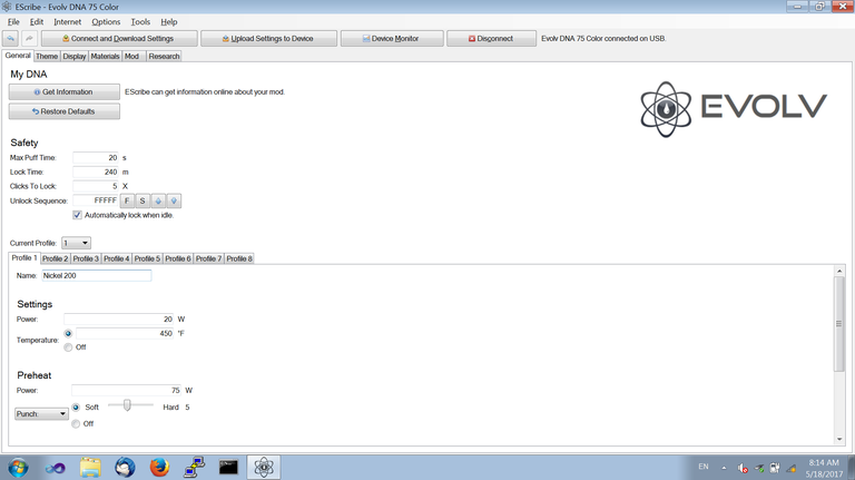 Evolv's EScribe 2.0 and Theme Designer software can be used to make the DNA 250 Color look and act exactly like you want. Designed for ease of use while allowing complete customization, the DNA 250 Color is vaping down to a science.