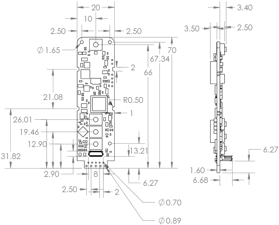 Board Side view - measured in millimeters